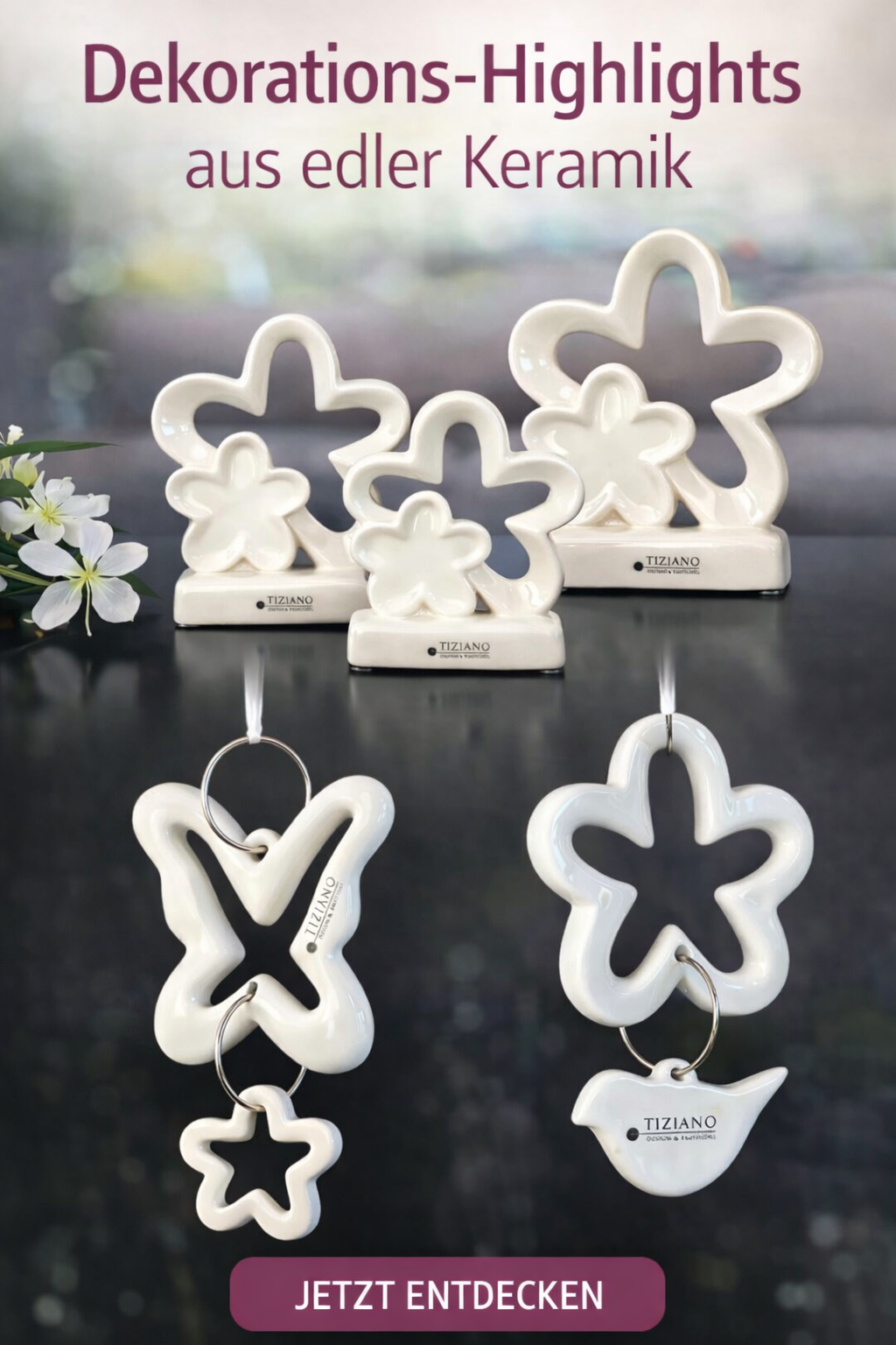 Tiziano Hänger   Gardenjoy  Blume   3-teilig   creme-weiß